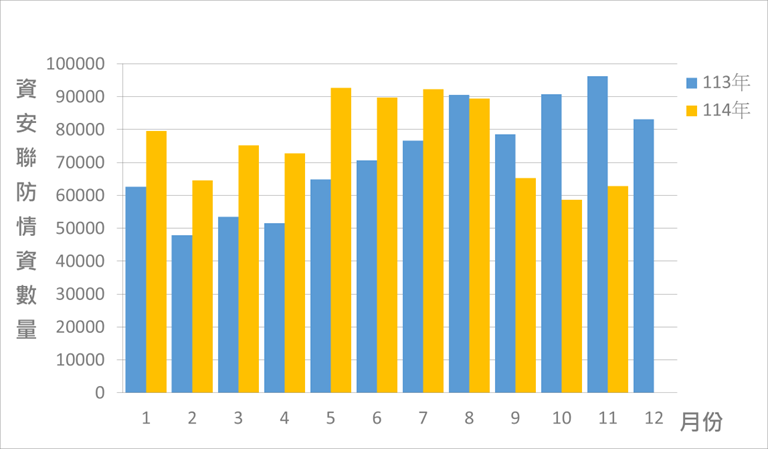 本月蒐整政府機關資安聯防情資共6萬2,795件(增加4,174件),分析可辨識的威脅種類,第1名為資訊蒐集類(41%),主要是透過掃描、探測及社交工程等攻擊手法取得資訊;其次為入侵嘗試類(23%),主要係嘗試入侵未經授權的主機;以及入侵攻擊類(18%),大多是系統遭未經授權存取或取得系統/使用者權限。統計近1年情資數量分布,詳見圖1。