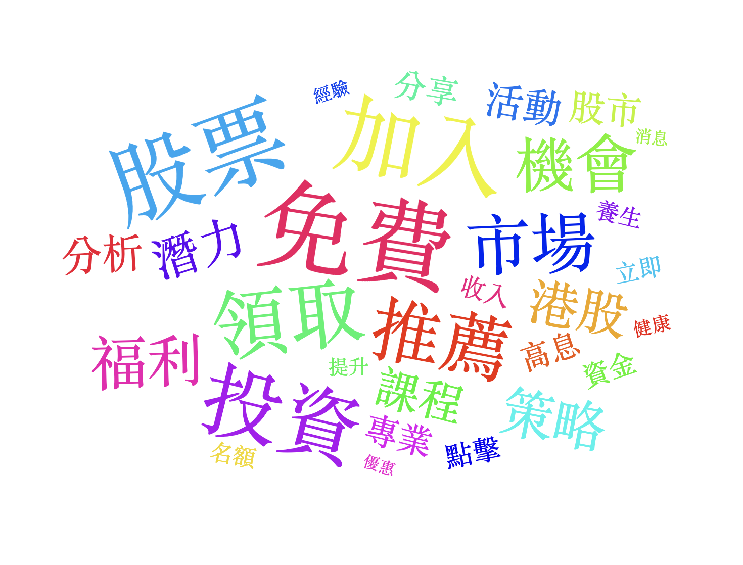 本週(01/10~01/16)Top 關鍵字仍以「點擊/領取/機會/免費/市場」為主軸,同時「推薦/策略/操作/加入/掌握」也非常突出;整體看起來仍是「先用免費或機會吸引注意 → 丟短網址或導向 LINE/站外頁面 → 再進一步推投資、課程、跟單或私下交易」的典型導流節奏。另可見「報牌、低價優質、九點操作」等投資社群話術更集中,搭配「限時名額」與「立即獲得」加速轉換。