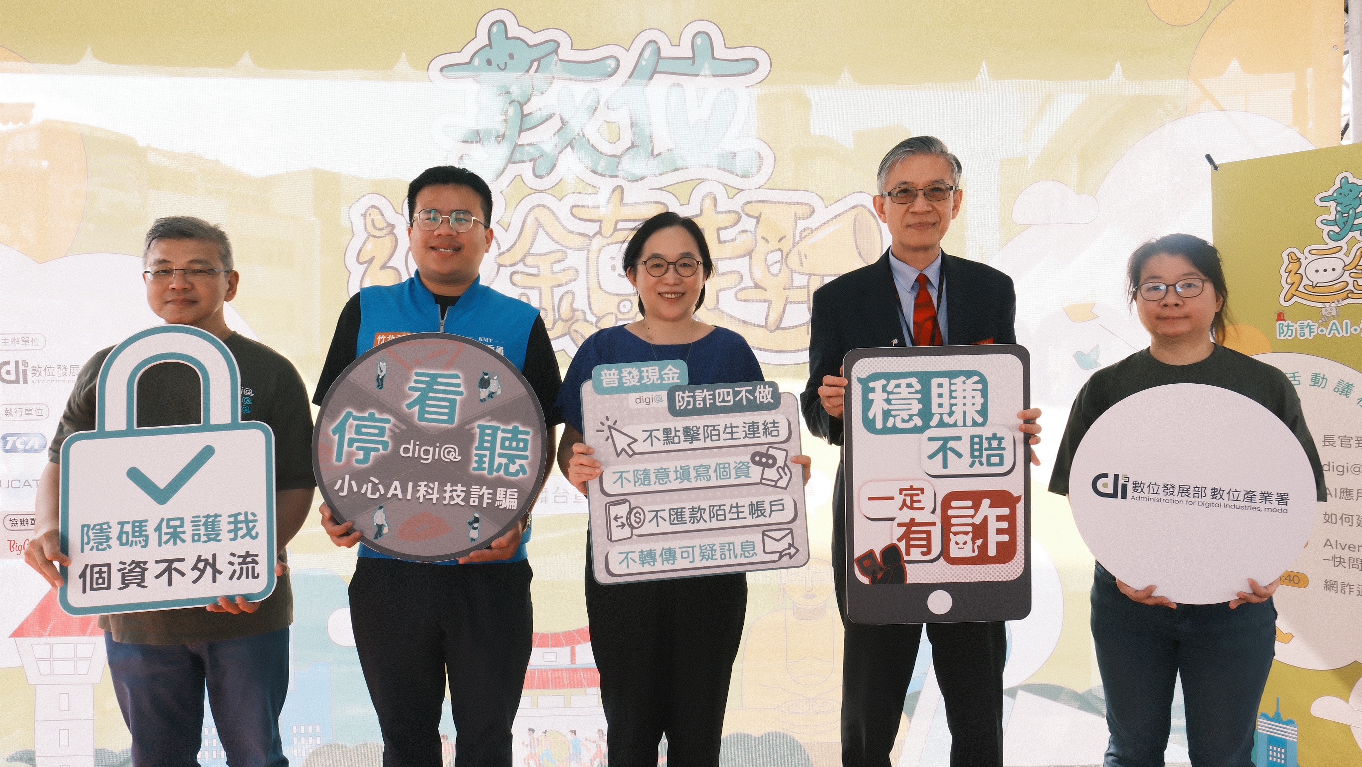 數位發展部侯宜秀次長表示:「【數位逗鎮趣】不只是推廣數位生活的便利與智慧應用,也希望把防詐知識與資安觀念帶給大家。期待大家在活動中滿載而歸,並將數位安全意識分享給親友,共同營造安心又便利的數位環境。而民眾期待的普發一萬元政策,也務必當心詐騙,建議民眾防詐四不原則,不點擊陌生連結、不隨意填寫個資、不匯款陌生帳號、不轉傳可疑訊息,才能小心防詐安心領錢。」