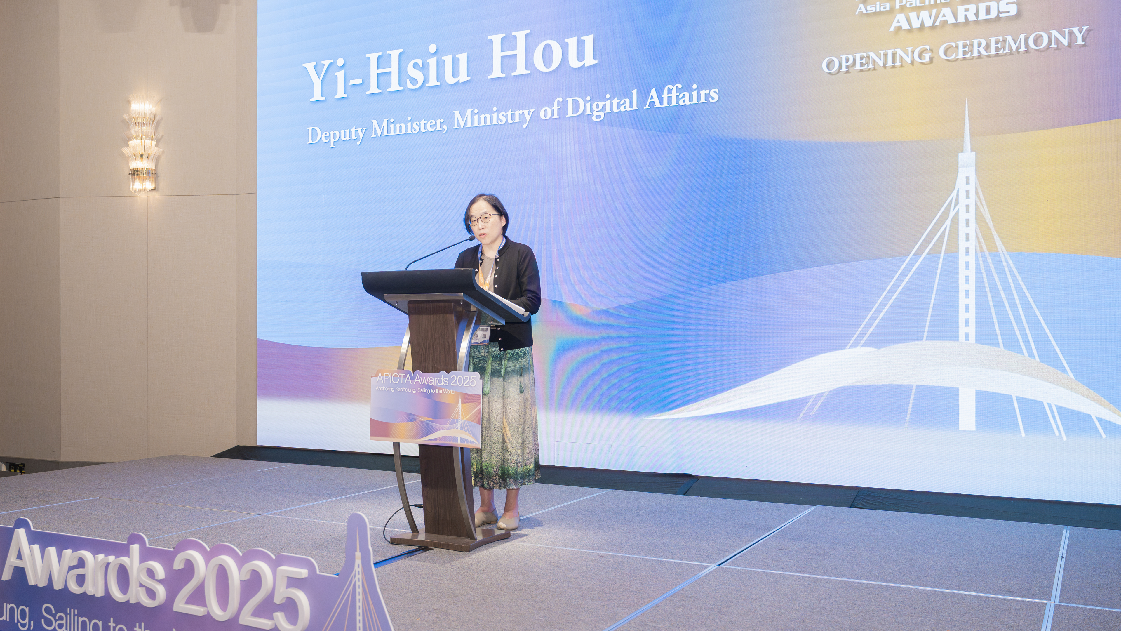 數位發展部候宜秀次長表示,APICTA Awards今年由臺灣主辦,不僅是國際社群對臺灣科技實力的肯定,更象徵臺灣願意以更開放的姿態,與印太夥伴共同打造跨國合作的新格局。本次期待透過競賽、展示與商洽媒合及新創發表會等三大面向,促進跨界對話及跨經濟體間技術交流,讓創新在臺灣匯聚,並在印太地區持續擴散。